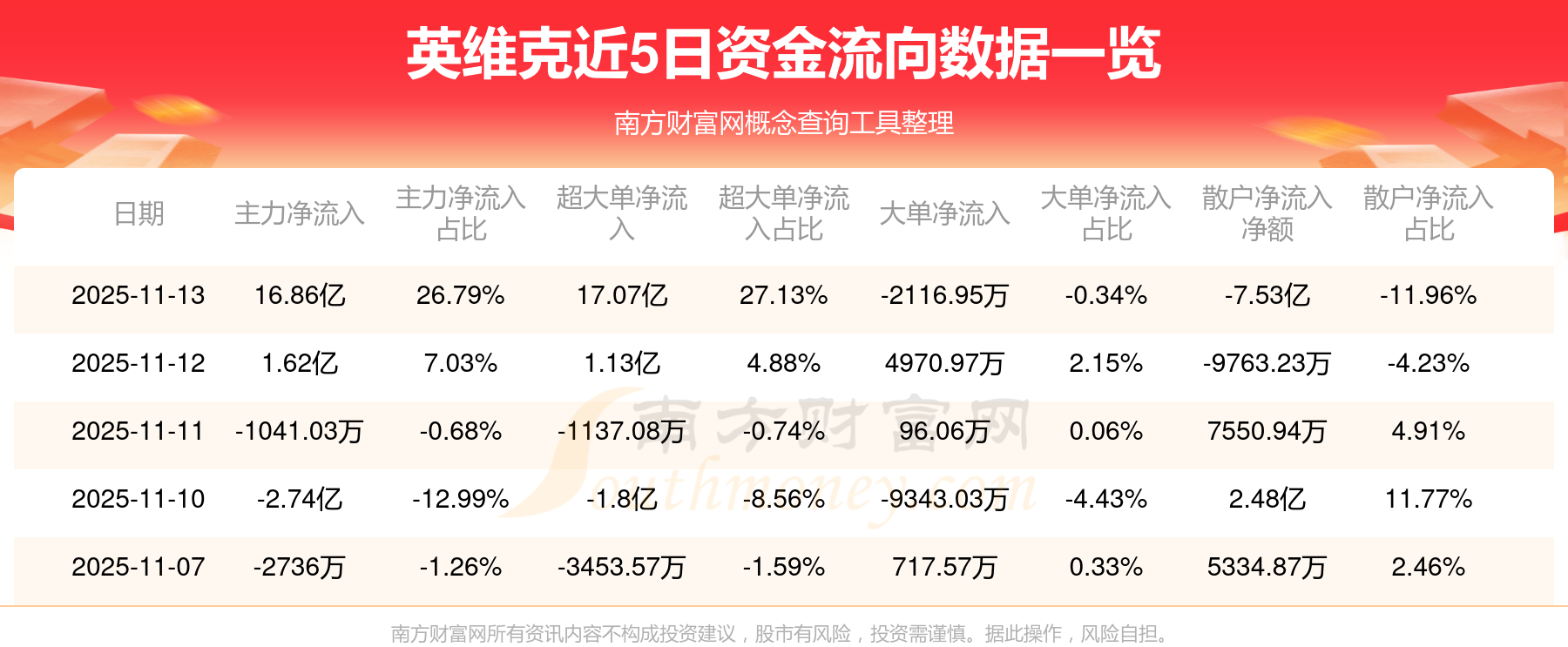 11月13日該股主力資金凈流入16.86億元,超大單資金凈流入17.07億元,大單資金凈流出2116.95萬(wàn)元,中單資金凈流出9.34億元,散戶資金凈流出7.53億元。