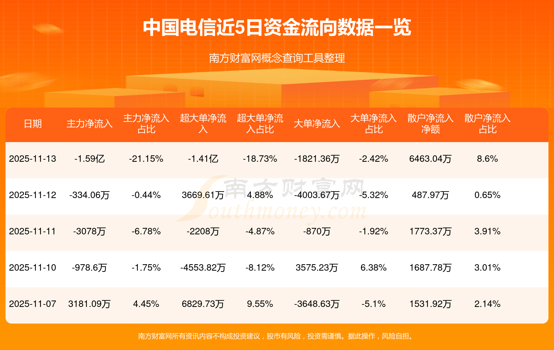11月13日該股主力凈流出1.59億元,超大單凈流出1.41億元,大單凈流出1821.36萬元,中單凈流入9441.5萬元,散戶凈流入6463.04萬元。