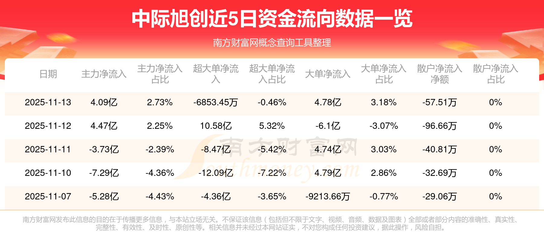 近5日資金流向一覽見下表: