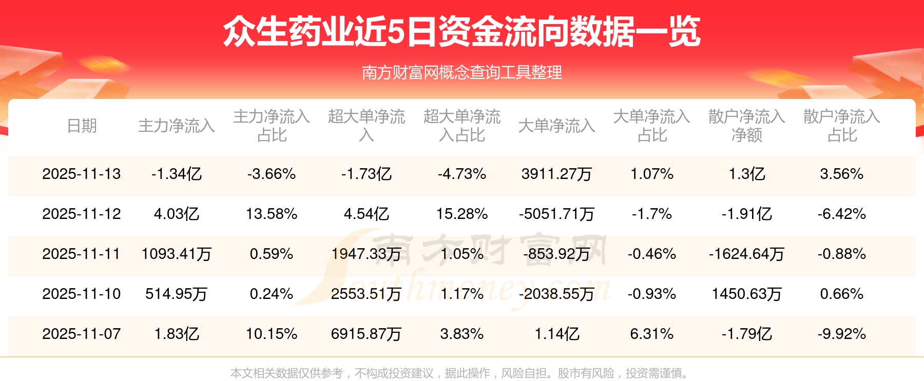11月13日消息,眾生藥業(yè)資金凈流出1.34億元,超大單資金凈流出1.73億元,換手率20.49%,成交金額36.58億元。