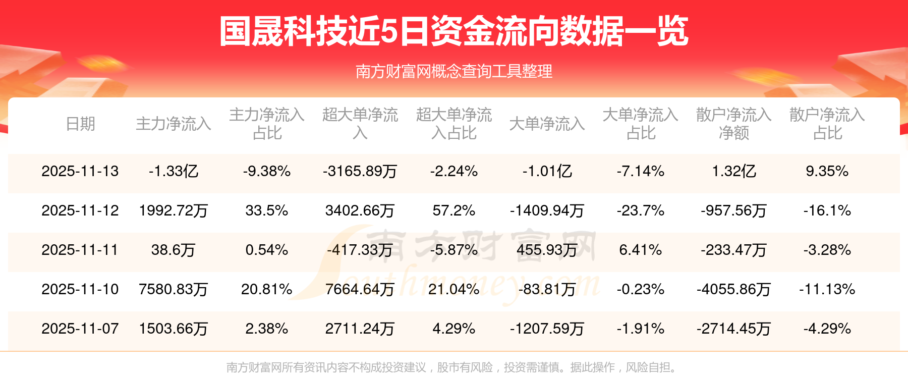 11月13日該股主力凈流出1.33億元,超大單凈流出3165.89萬元,大單凈流出1.01億元,中單凈流入36.88萬元,散戶凈流入1.32億元。