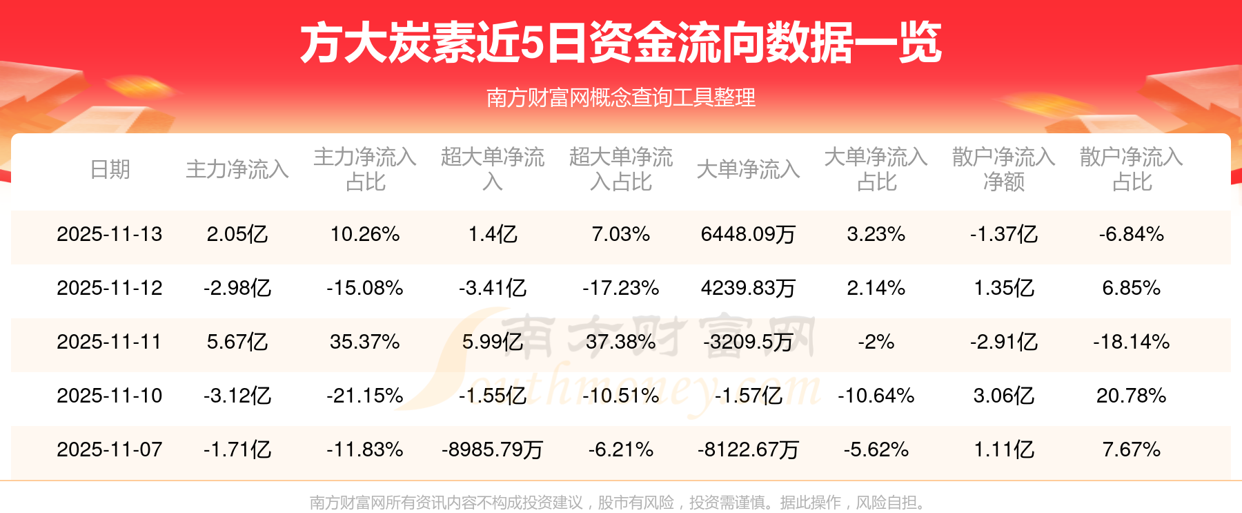 11月13日該股主力資金凈流入2.05億元,超大單資金凈流入1.4億元,大單資金凈流入6448.09萬元,中單資金凈流出6816.56萬元,散戶資金凈流出1.37億元。
