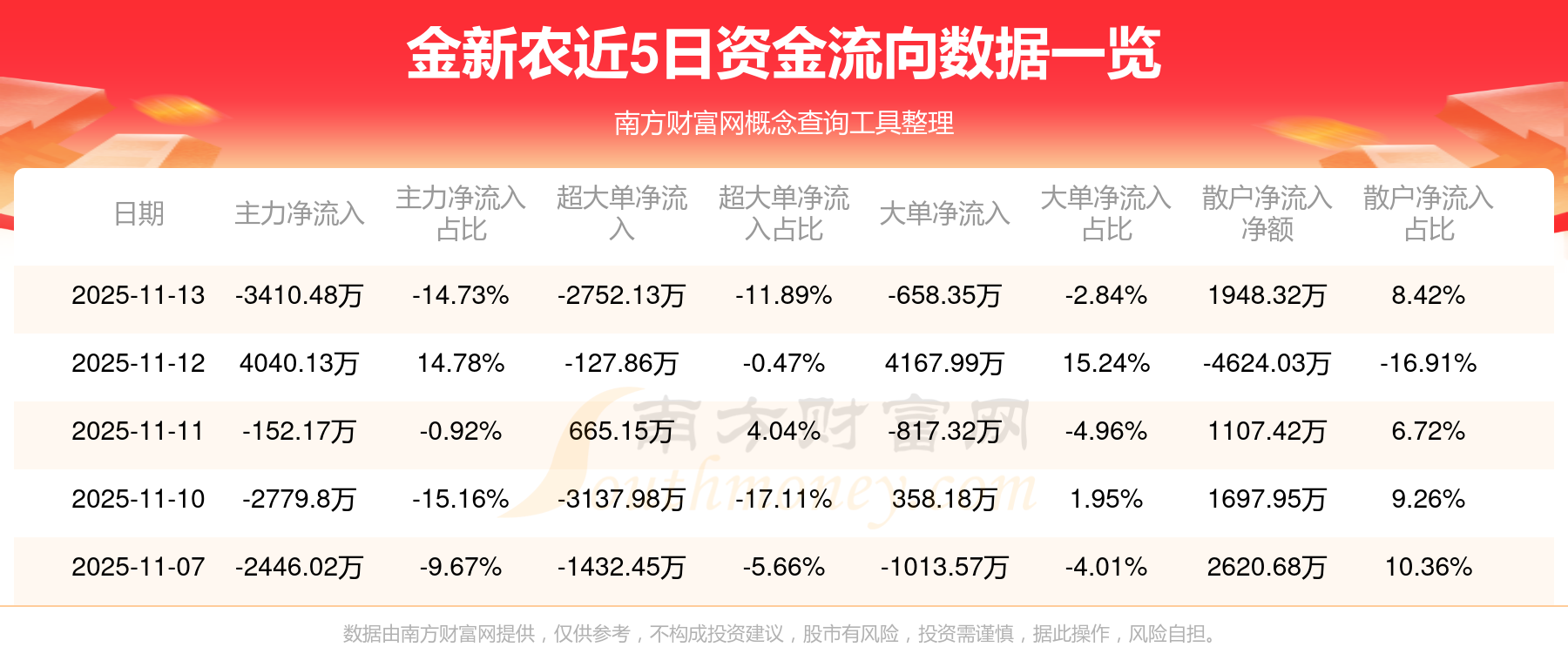11月13日消息,金新農(nóng)11月13日主力資金凈流出3410.48萬元,超大單資金凈流出2752.13萬元,大單資金凈流出658.35萬元,散戶資金凈流入1948.32萬元。