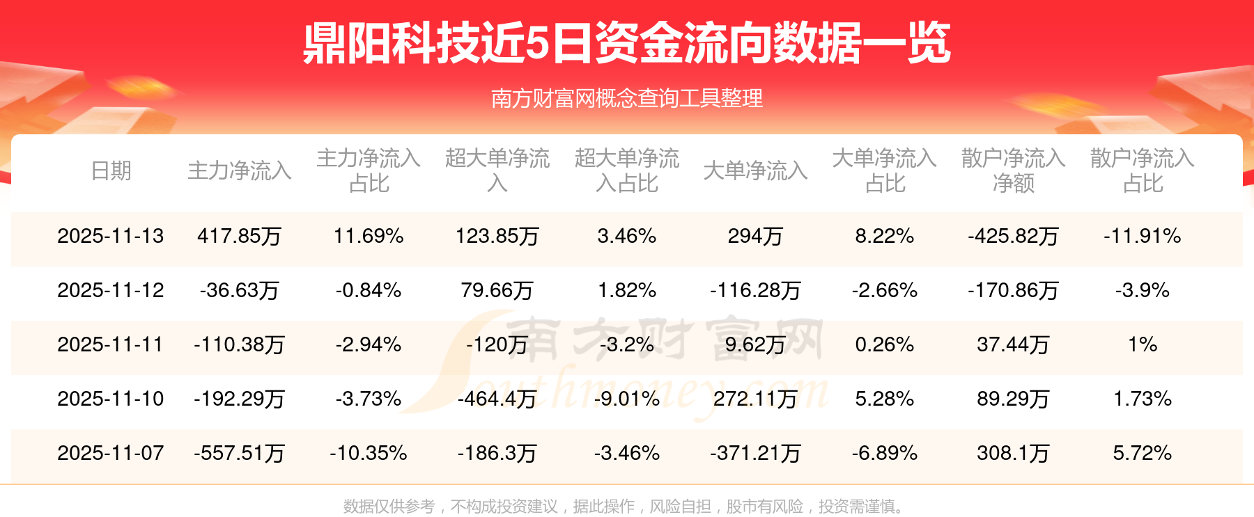11月13日消息,資金凈流入417.85萬元,超大單資金凈流入123.85萬元,成交金額729.23萬元。