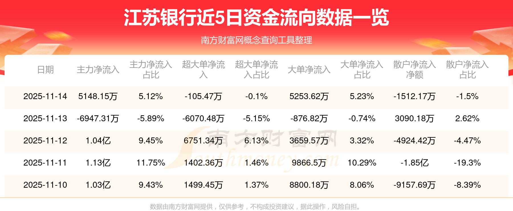 11月14日消息,江蘇銀行11月14日主力凈流入5148.15萬元,超大單凈流出105.47萬元,大單凈流入5253.62萬元,散戶凈流出1512.17萬元。