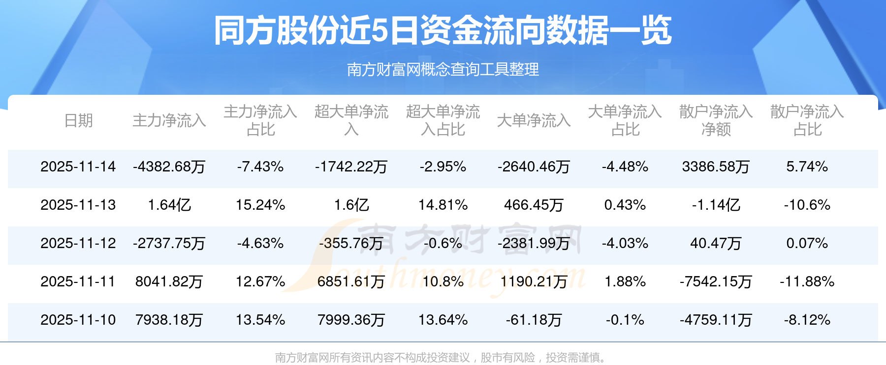 近5日資金流向一覽見下表: