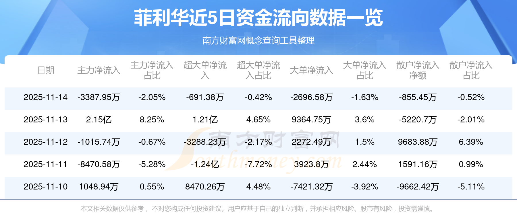 11月14日消息,菲利華資金凈流出3387.95萬元,超大單凈流出691.38萬元,換手率4.27%,成交金額16.56億元。