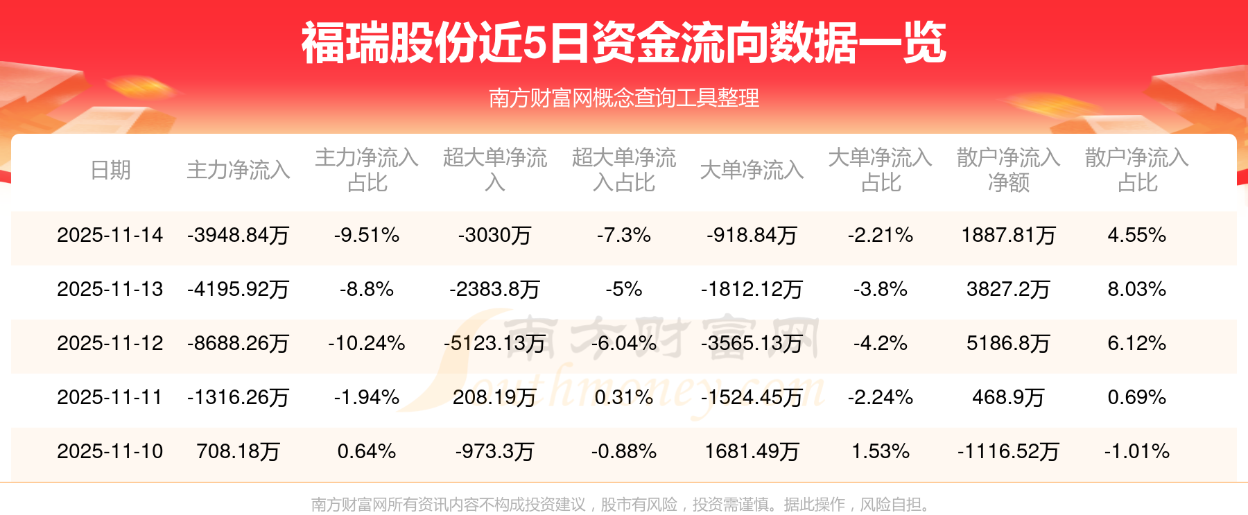 11月14日消息,福瑞股份資金凈流出3948.84萬元,超大單凈流出3030萬元,換手率2.45%,成交金額4.15億元。