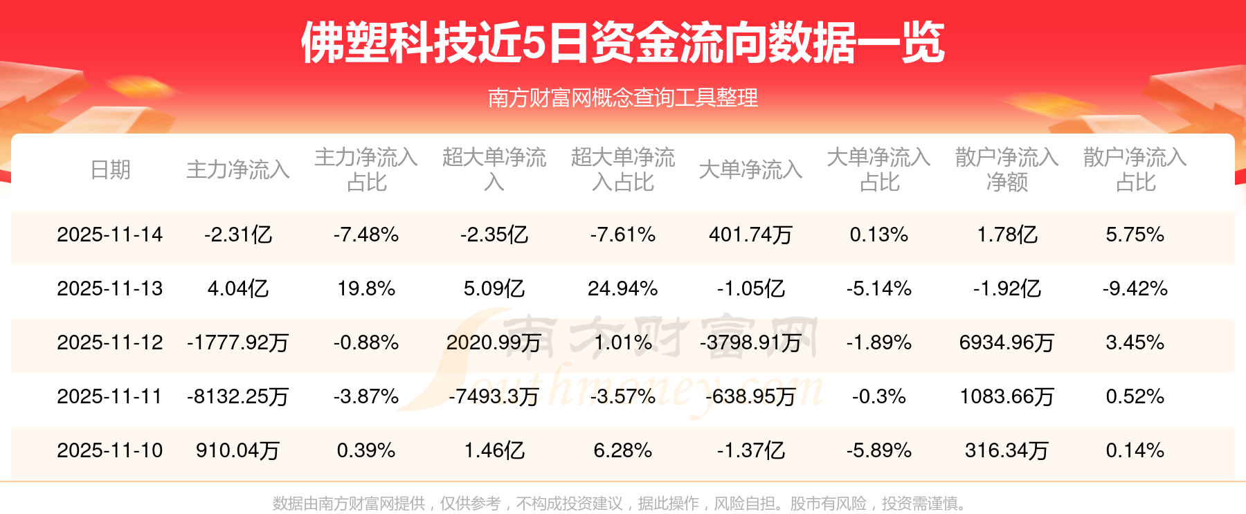 11月14日消息,佛塑科技資金凈流出2.31億元,超大單資金凈流出2.35億元,換手率24.85%,成交金額30.87億元。