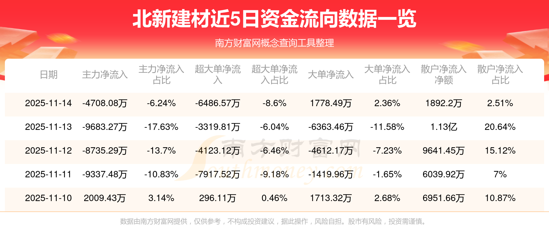 近5日資金流向一覽見下表: