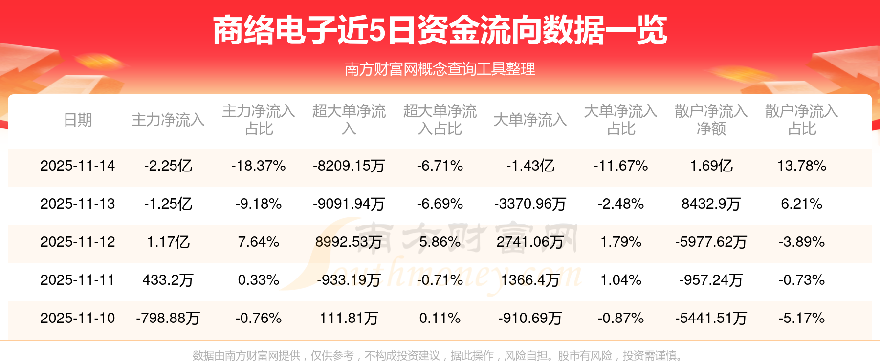 11月14日消息,商絡電子11月14日主力凈流出2.25億元,超大單凈流出8209.15萬元,大單凈流出1.43億元,散戶凈流入1.69億元。