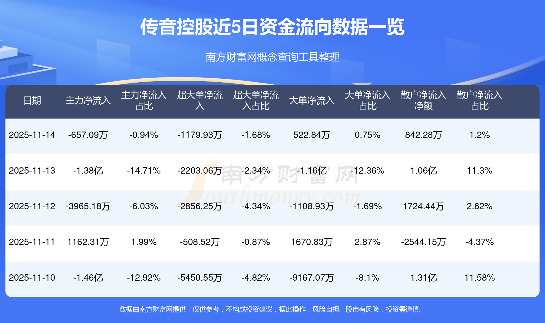 近5日資金流向一覽見下表: