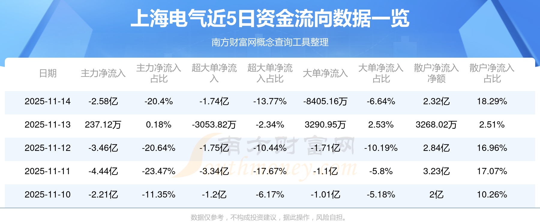 11月14日該股主力資金凈流出2.58億元,超大單資金凈流出1.74億元,大單資金凈流出8405.16萬元,中單資金凈流入2679.71萬元,散戶資金凈流入2.32億元。