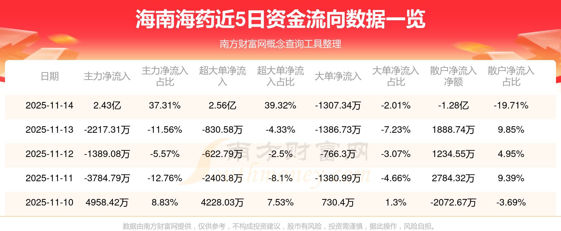 資金流向數(shù)據(jù)方面,11月14日主力資金凈流流入2.43億元,超大單資金凈流入2.56億元,大單資金凈流出1307.34萬元,散戶資金凈流出1.28億元。