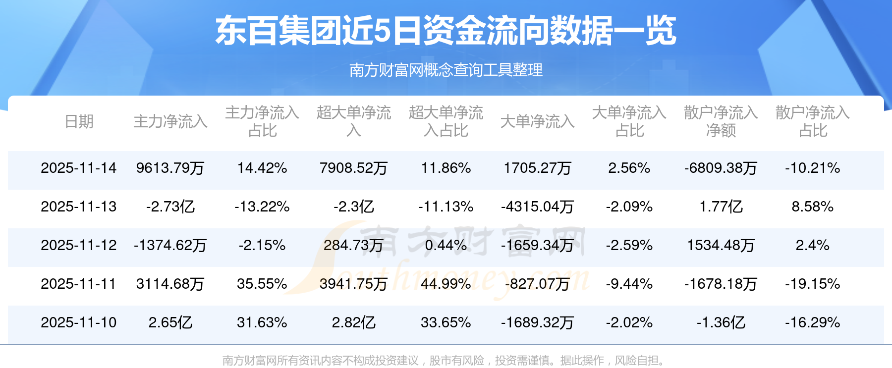 11月14日消息,東百集團(tuán)11月14日主力凈流入9613.79萬(wàn)元,超大單凈流入7908.52萬(wàn)元,大單凈流入1705.27萬(wàn)元,散戶凈流出6809.38萬(wàn)元。