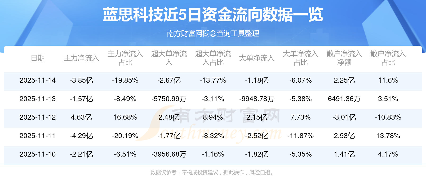 11月14日消息,藍(lán)思科技資金凈流出3.85億元,超大單凈流出2.67億元,換手率1.38%,成交金額19.38億元。