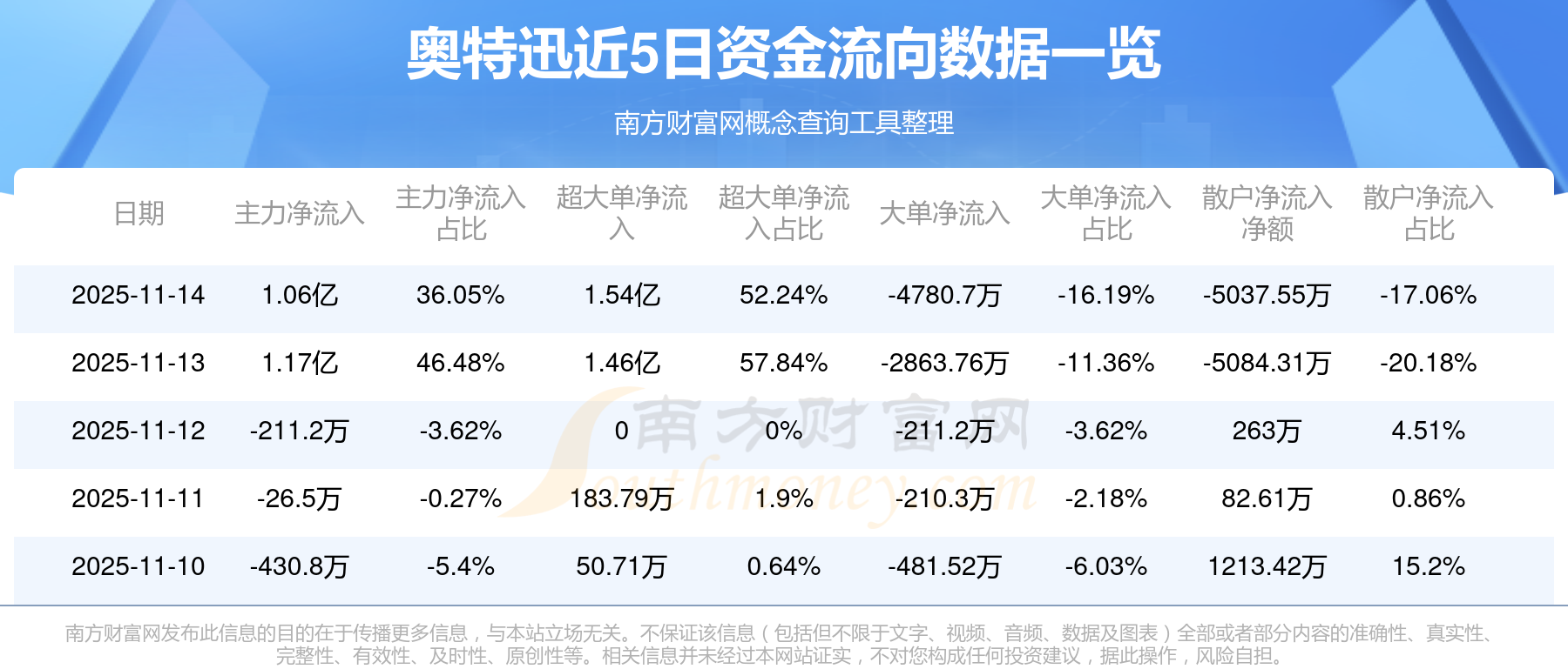 11月14日主力資金凈流入1.06億元,超大單資金凈流入1.54億元,換手率7.45%,成交金額2.95億元。