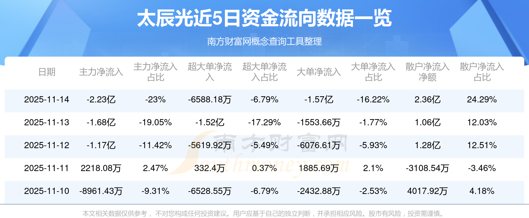 11月14日消息,太辰光主力凈流出2.23億元,超大單凈流出6588.18萬(wàn)元,散戶凈流入2.36億元。