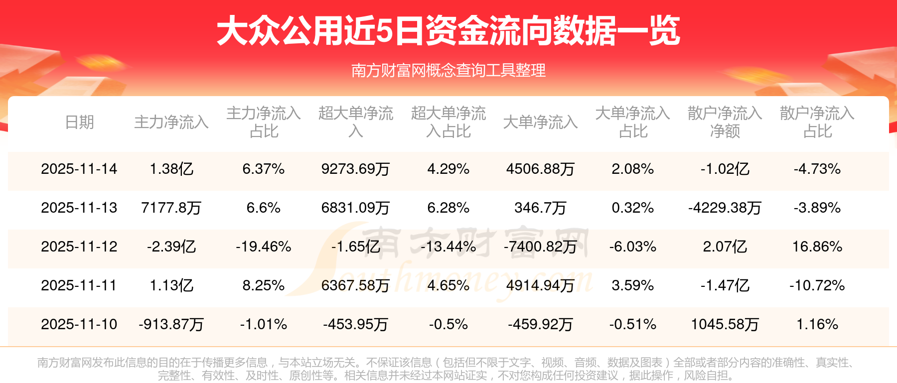 11月14日消息,大眾公用資金凈流入1.38億元,超大單凈流入9273.69萬(wàn)元,換手率12.89%,成交金額21.62億元。