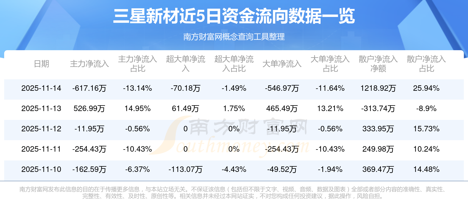 近5日資金流向一覽見下表: