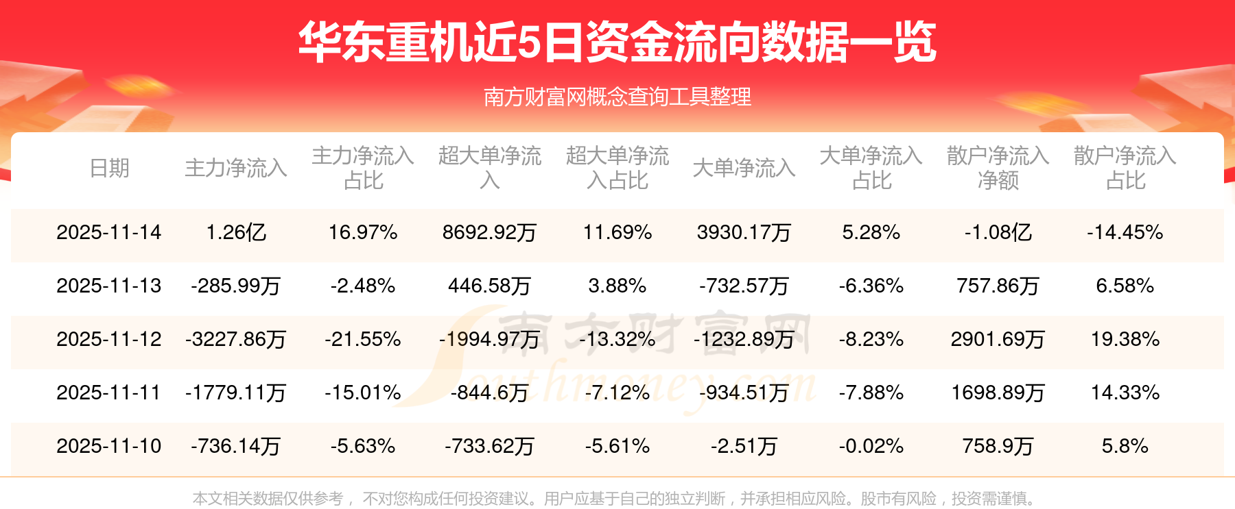 11月14日資金凈流入1.26億元,超大單凈流入8692.92萬(wàn)元,換手率9.56%,成交金額7.44億元。