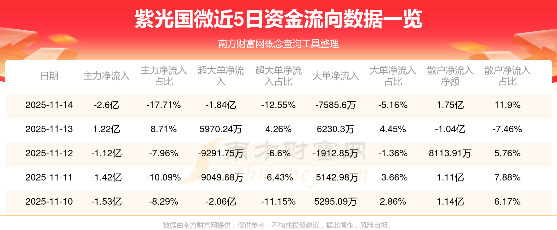 近5日資金流向一覽見下表: