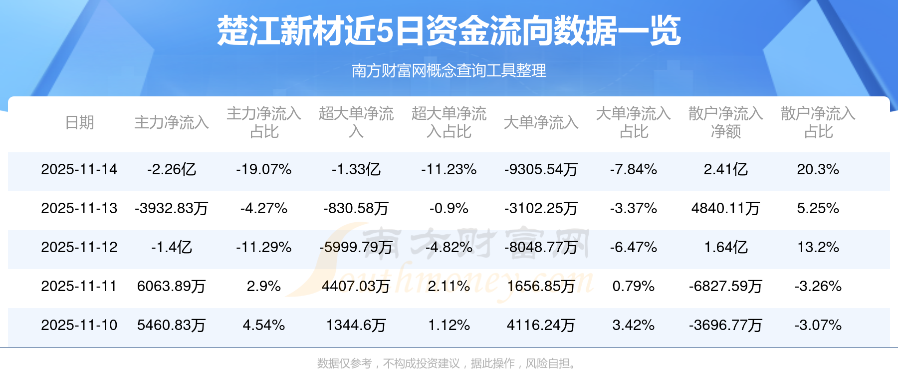 11月14日主力資金凈流出2.26億元,超大單資金凈流出1.33億元,換手率6.11%,成交金額11.87億元。