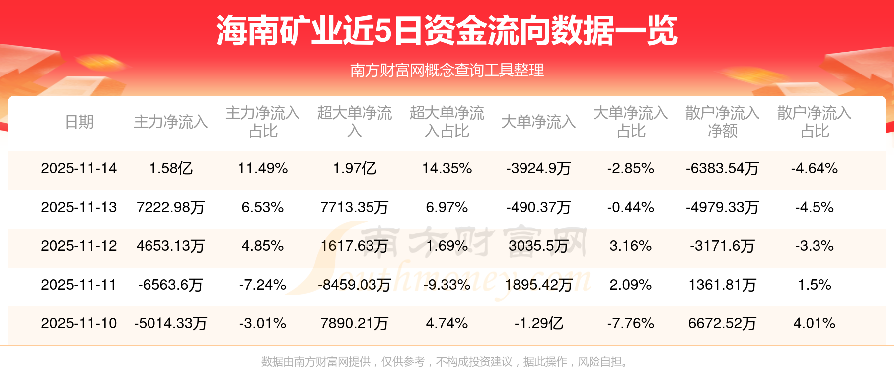 11月14日消息,資金凈流入1.58億元,超大單資金凈流入1.97億元,成交金額13.76億元。