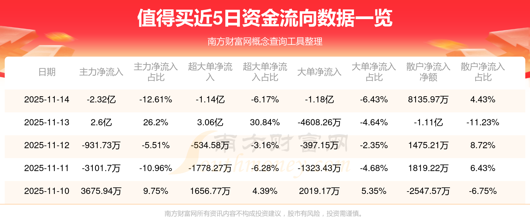 11月14日主力資金凈流出2.32億元,超大單資金凈流出1.14億元,換手率36.99%,成交金額18.38億元。