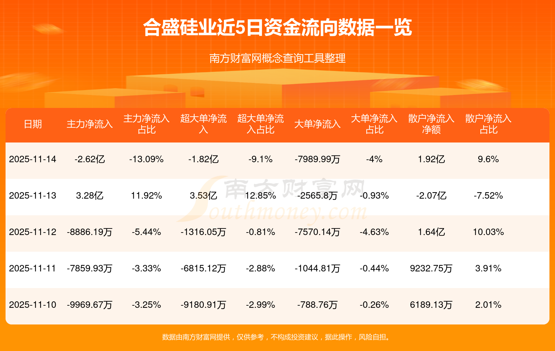 11月14日主力資金凈流出2.62億元,超大單資金凈流出1.82億元,換手率2.79%,成交金額20億元。
