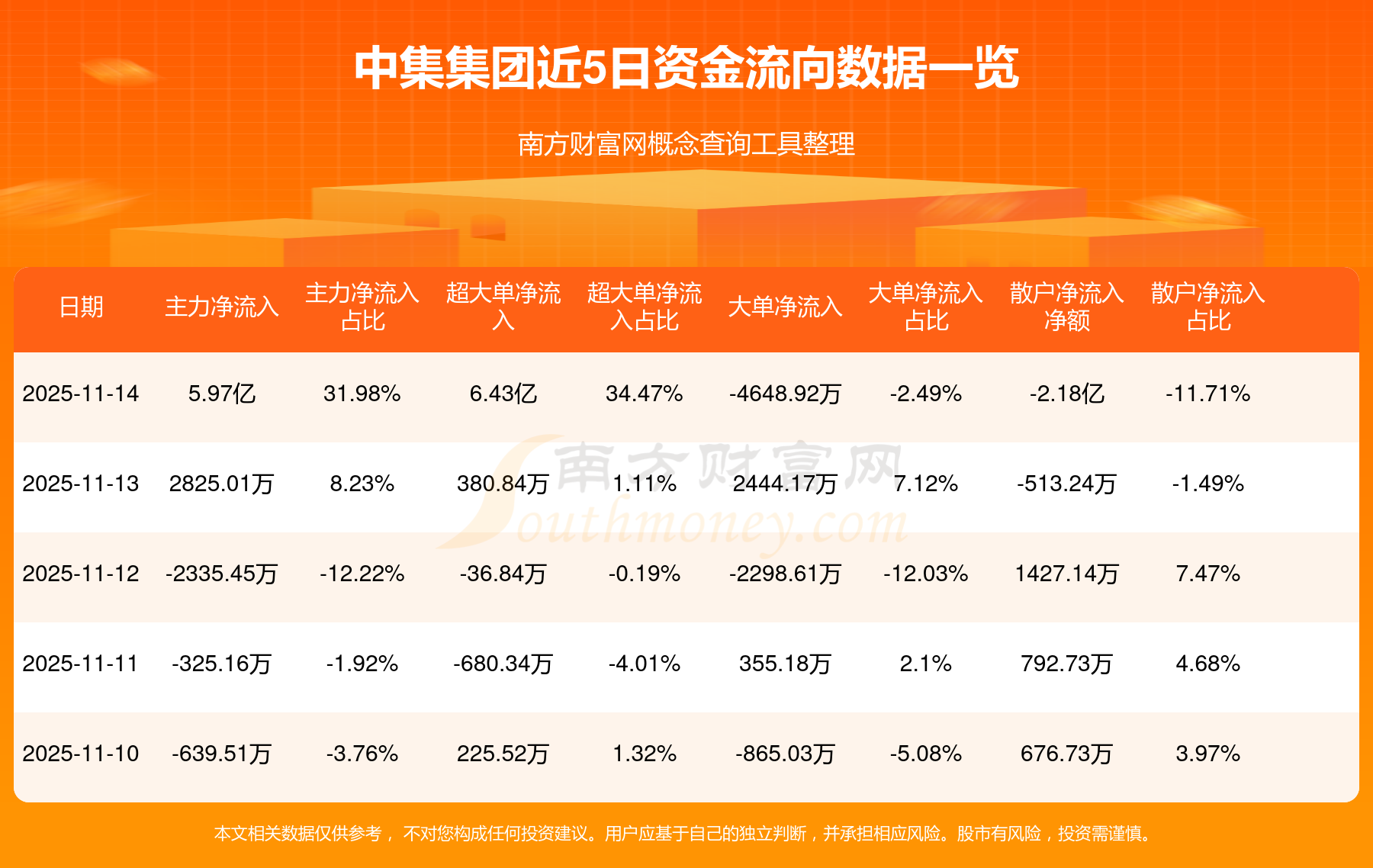 11月14日消息,中集集團(tuán)資金凈流入5.97億元,超大單凈流入6.43億元,換手率9.27%,成交金額18.66億元。