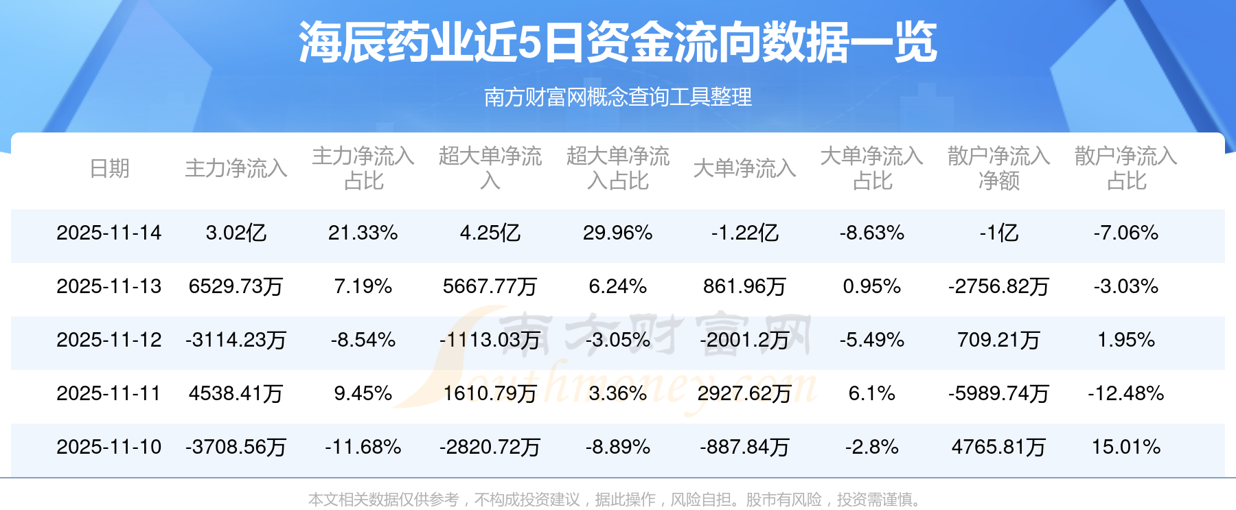 11月14日消息,資金凈流入3.02億元,超大單凈流入4.25億元,成交金額14.17億元。