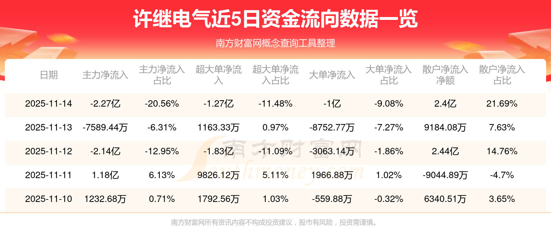 11月14日該股主力資金凈流出2.27億元,超大單資金凈流出1.27億元,大單資金凈流出1億元,中單資金凈流出1253.99萬元,散戶資金凈流入2.4億元。