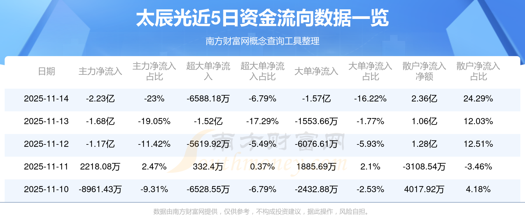 近5日資金流向一覽見下表: