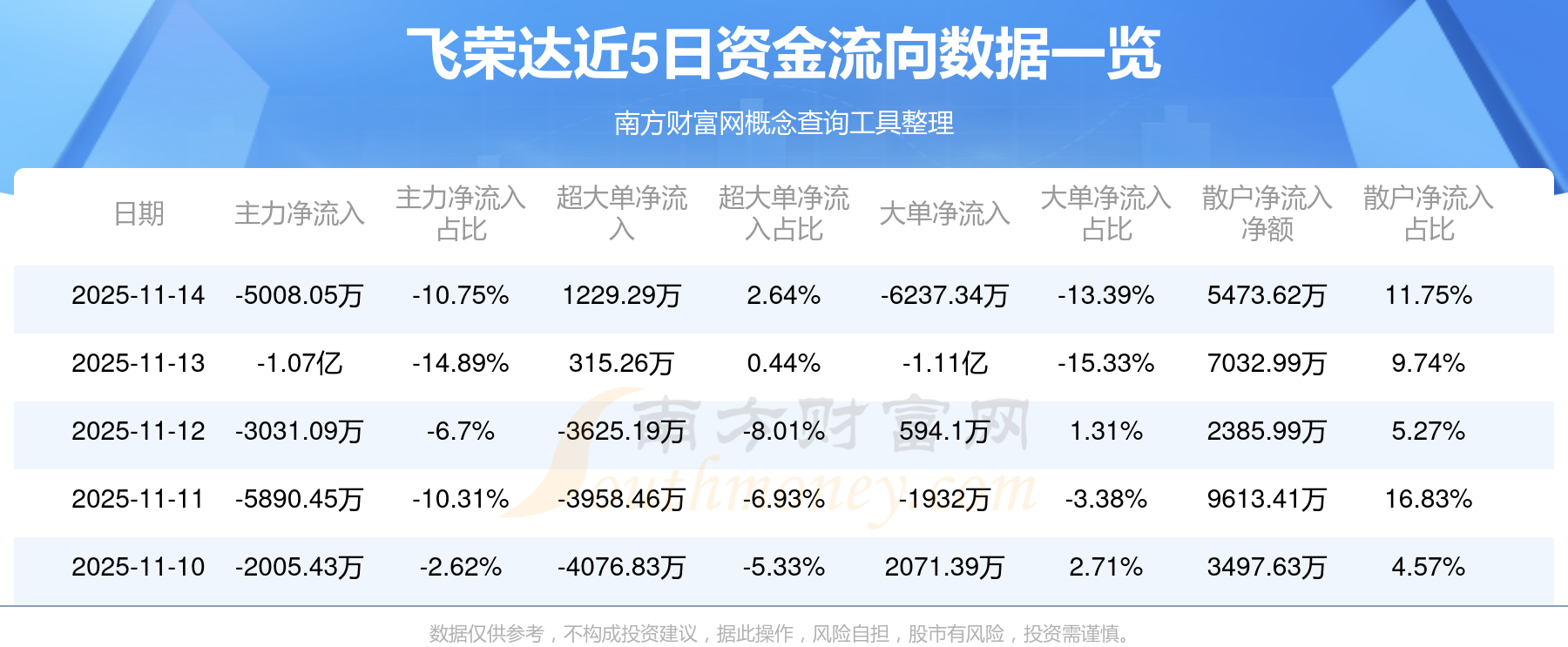 11月14日資金凈流出5008.05萬(wàn)元,超大單凈流入1229.29萬(wàn)元,換手率4.13%,成交金額4.66億元。