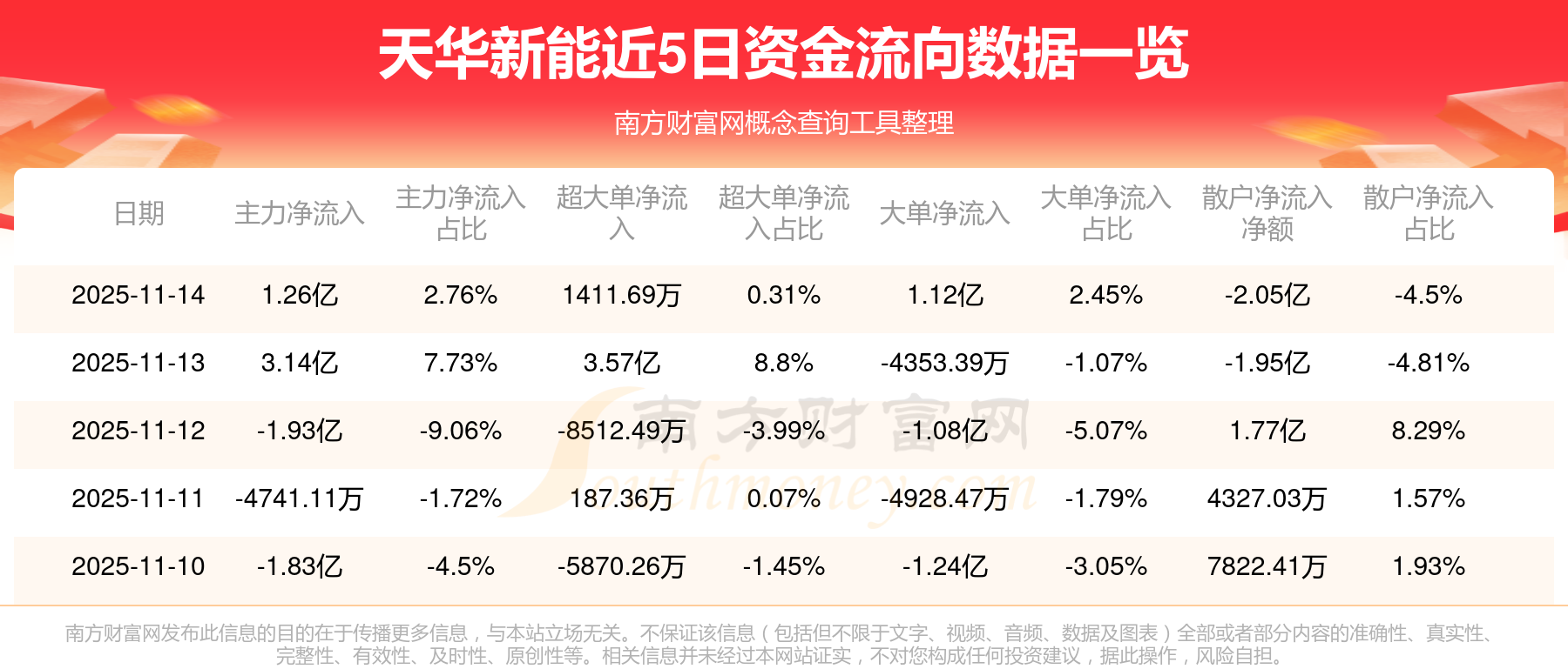 11月14日該股主力凈流入1.26億元,超大單凈流入1411.69萬(wàn)元,大單凈流入1.12億元,中單凈流入7911.05萬(wàn)元,散戶(hù)凈流出2.05億元。