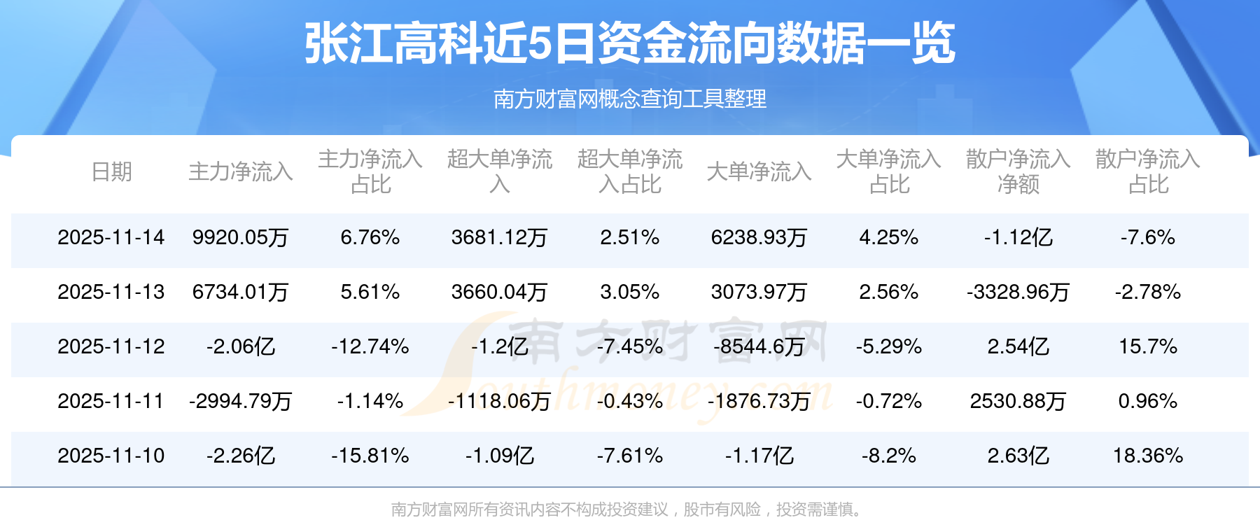 11月14日該股主力資金凈流入9920.05萬元,超大單資金凈流入3681.12萬元,大單資金凈流入6238.93萬元,中單資金凈流入1232.44萬元,散戶資金凈流出1.12億元。