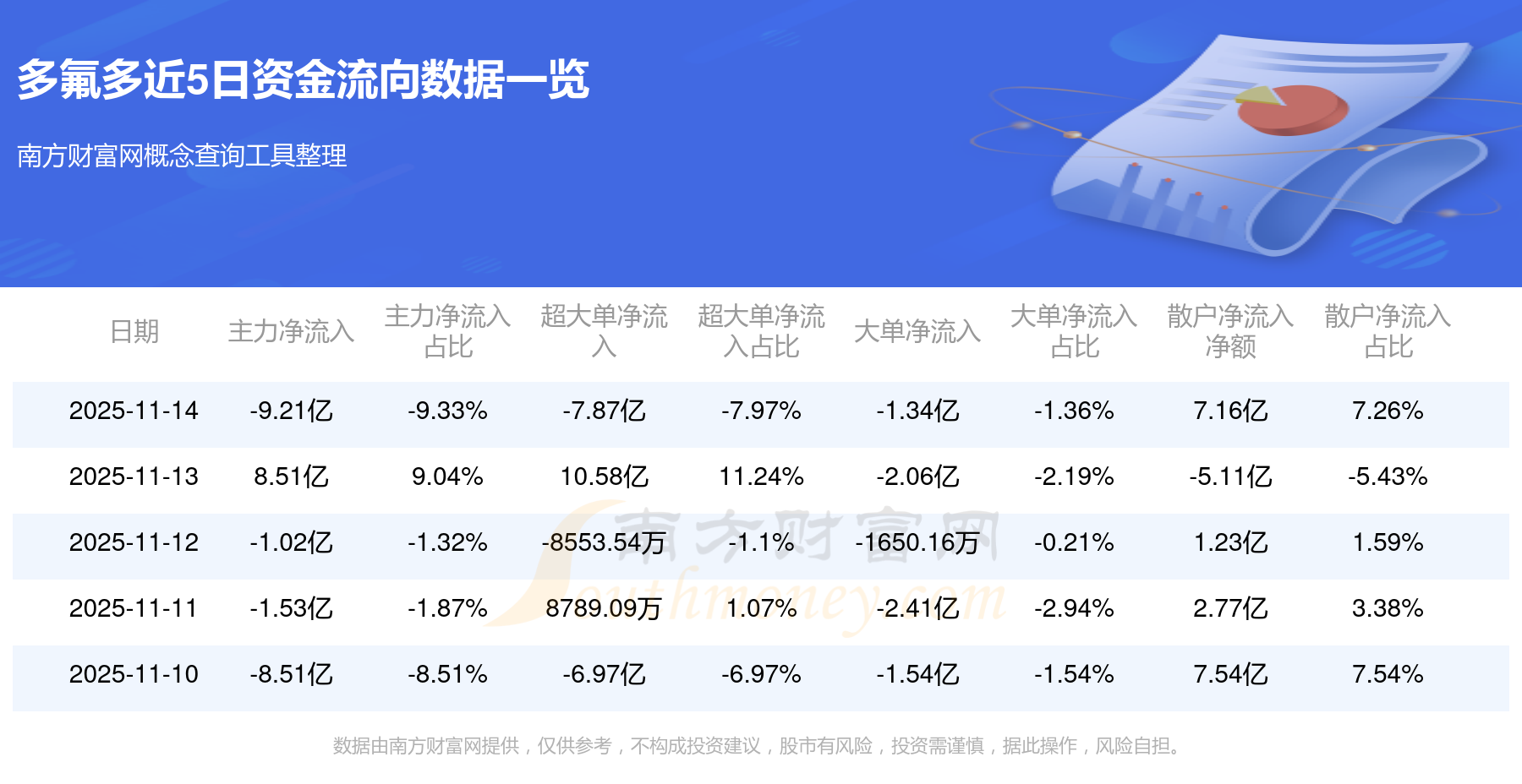 11月14日消息,多氟多11月14日主力資金凈流出9.21億元,超大單資金凈流出7.87億元,大單資金凈流出1.34億元,散戶資金凈流入7.16億元。