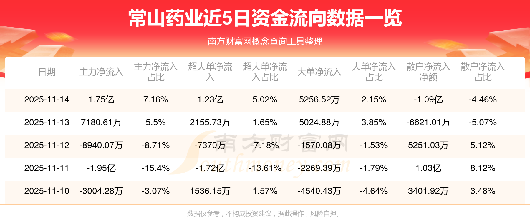 11月14日消息,常山藥業(yè)主力資金凈流入1.75億元,超大單資金凈流入1.23億元,散戶資金凈流出1.09億元。