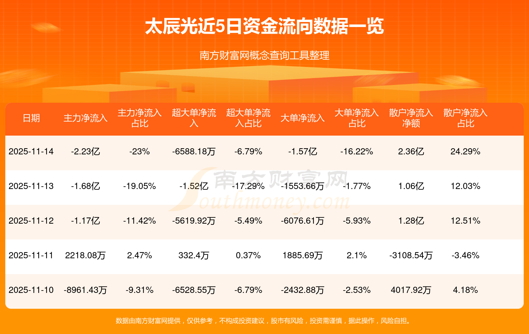 11月14日該股主力凈流出2.23億元,超大單凈流出6588.18萬元,大單凈流出1.57億元,中單凈流出1249.53萬元,散戶凈流入2.36億元。