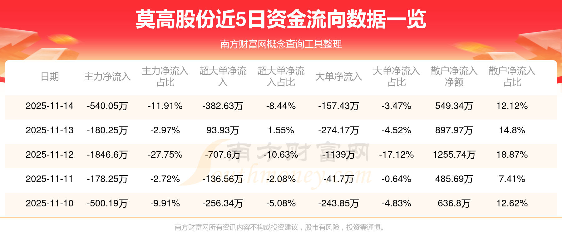 11月14日消息,莫高股份資金凈流出540.05萬元,超大單資金凈流出382.63萬元,換手率2.11%,成交金額4533.49萬元。