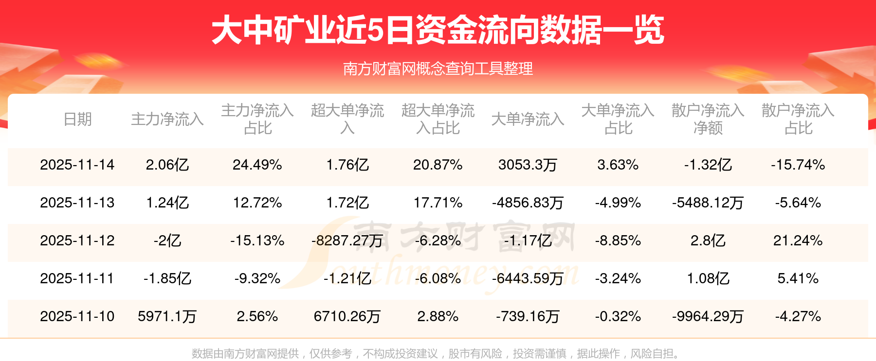 11月13日收盤消息,大中礦業(yè)5日內(nèi)股價上漲16.88%,今年來漲幅上漲69.16%,最新報28.080元,漲10%,市盈率為55.06。