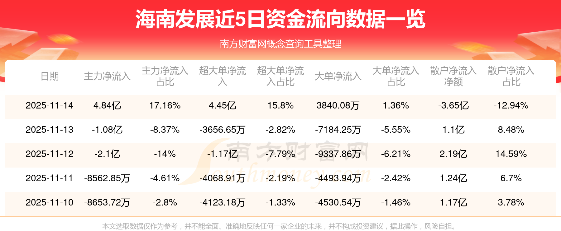 11月14日該股主力資金凈流入4.84億元,超大單資金凈流入4.45億元,大單資金凈流入3840.08萬(wàn)元,中單資金凈流出1.19億元,散戶資金凈流出3.65億元。