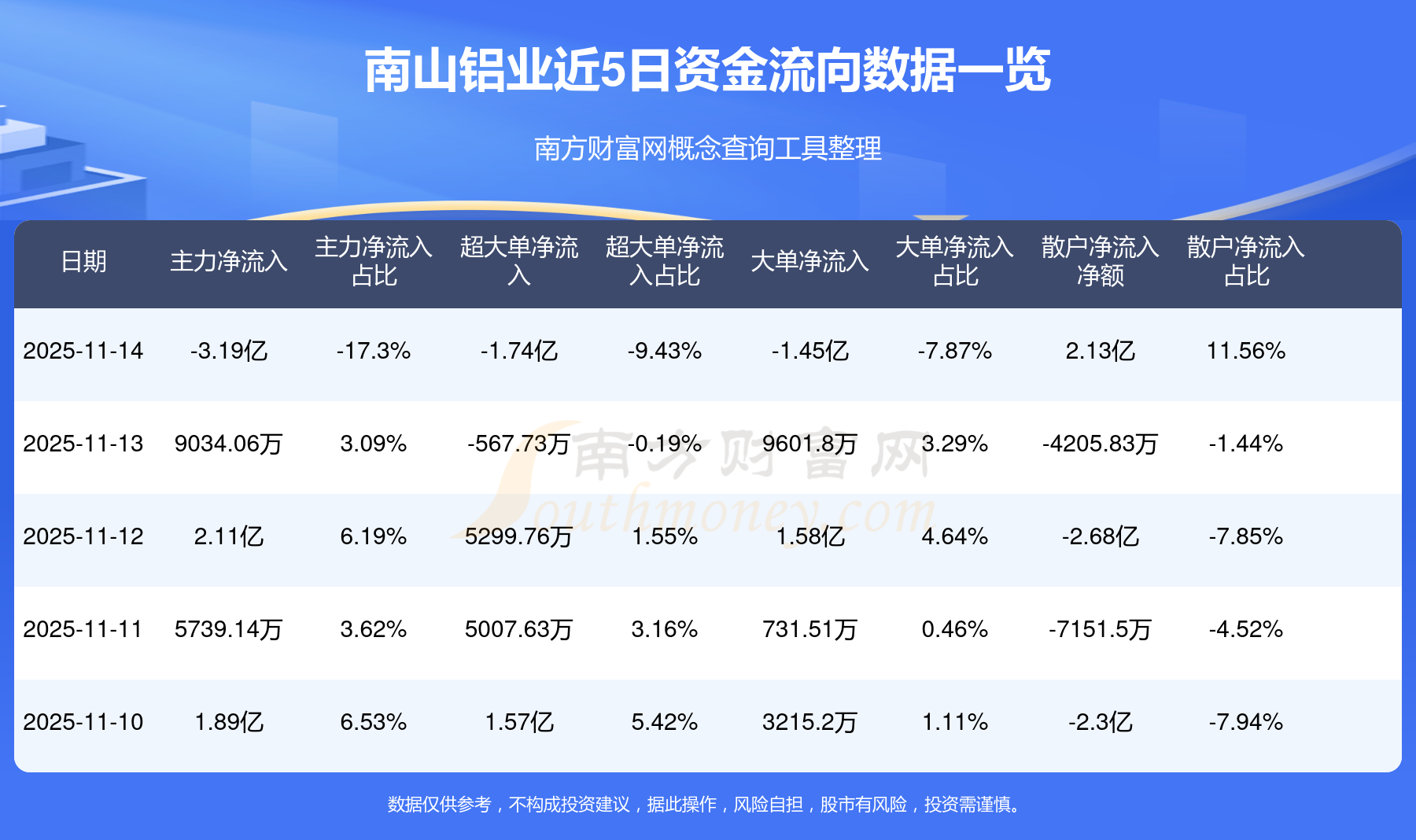 11月14日消息,南山鋁業(yè)資金凈流出3.19億元,超大單資金凈流出1.74億元,換手率3.03%,成交金額18.44億元。