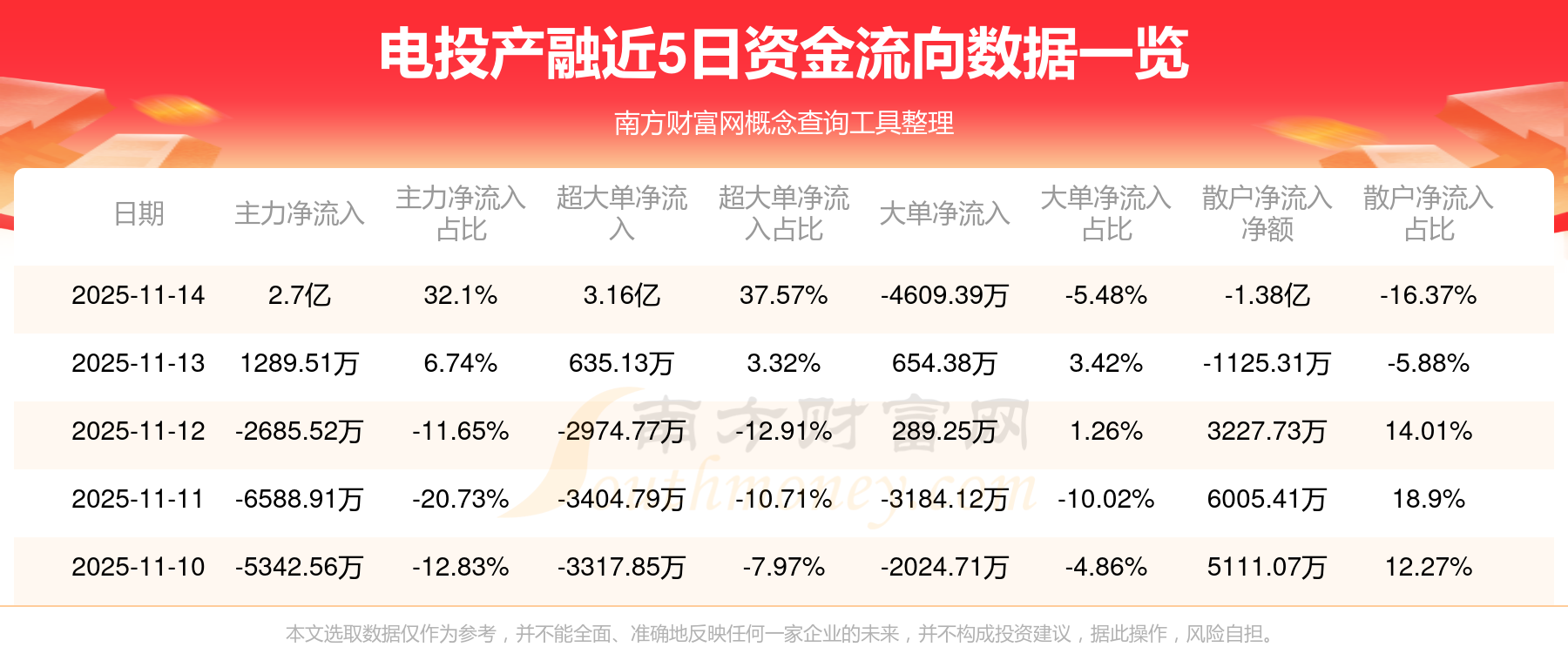 近5日資金流向一覽見下表: