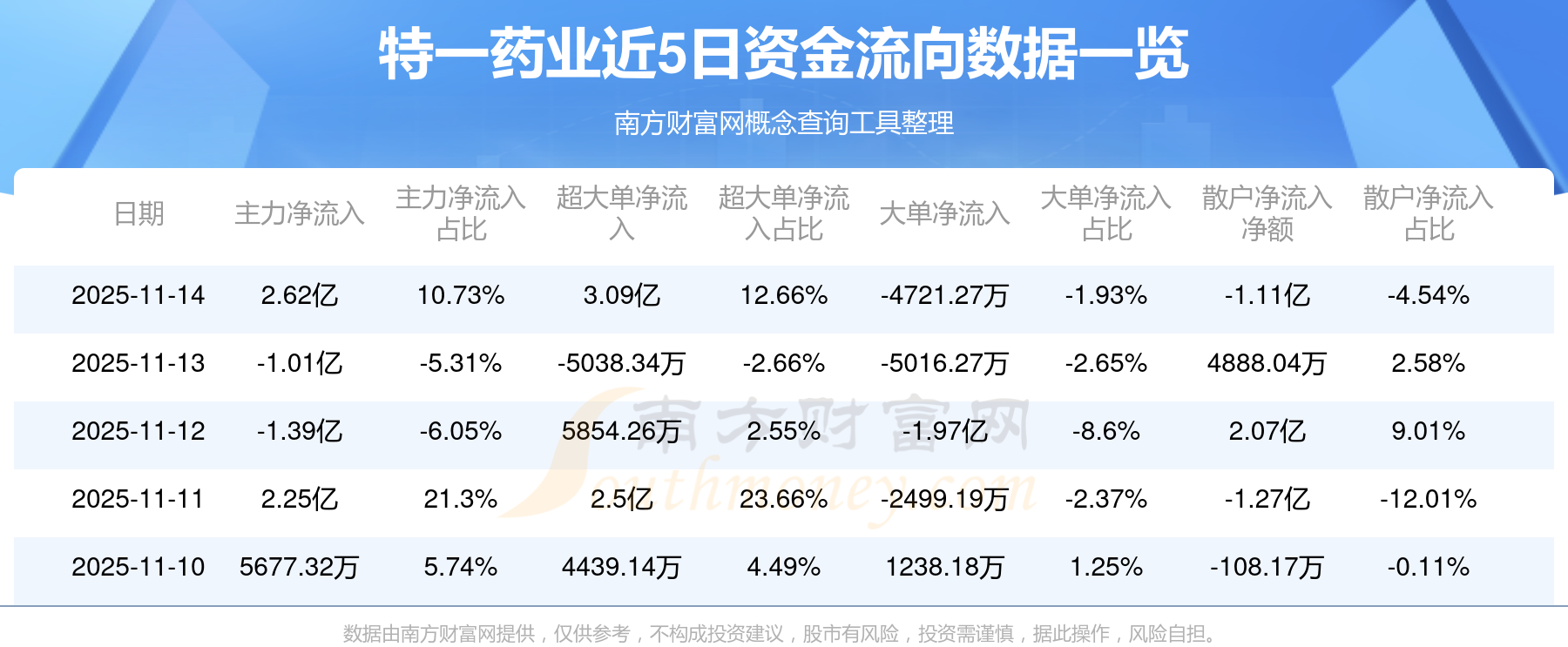 近5日資金流向一覽見下表: