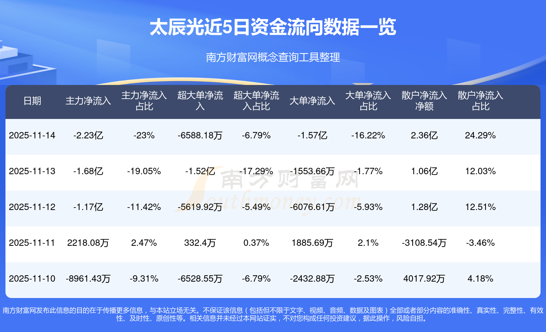 近5日資金流向一覽見下表: