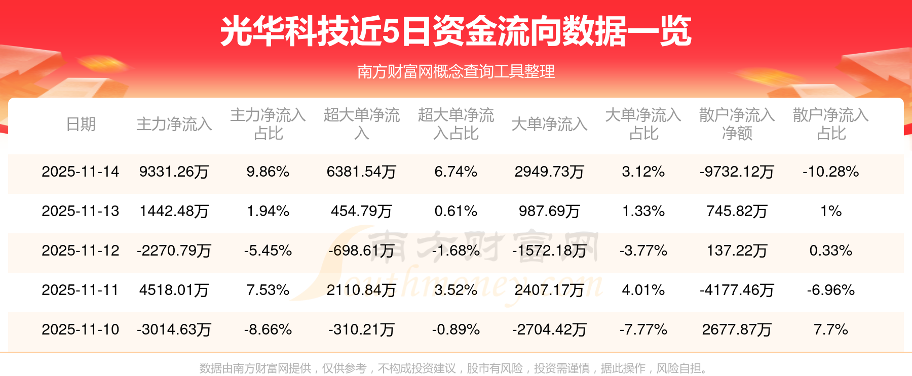 近5日資金流向一覽見下表:
