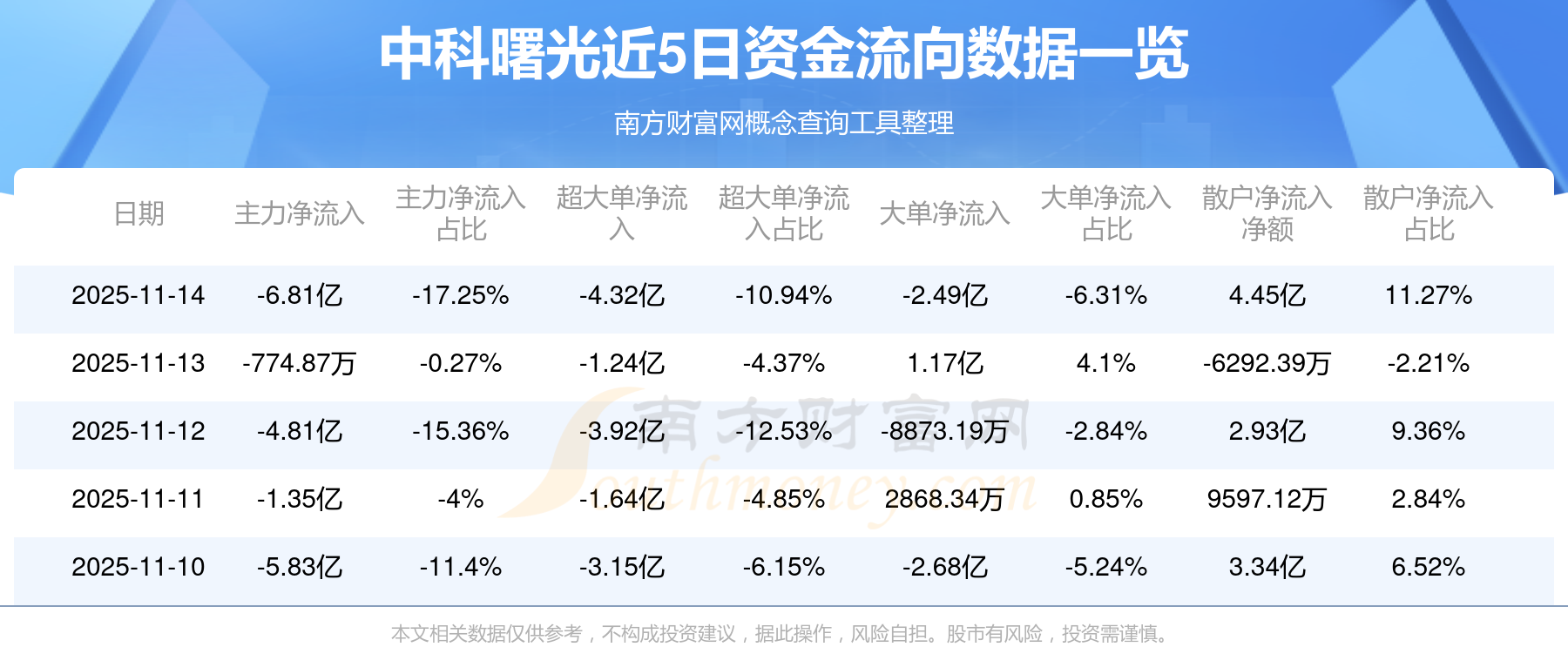 11月14日消息,中科曙光主力資金凈流出6.81億元,超大單資金凈流出4.32億元,散戶資金凈流入4.45億元。