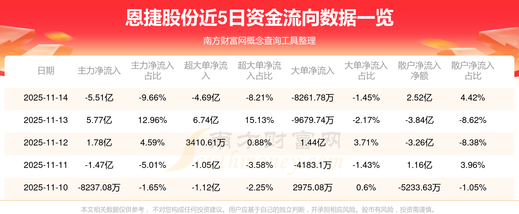 11月14日消息,恩捷股份11月14日主力凈流出5.51億元,超大單凈流出4.69億元,大單凈流出8261.78萬(wàn)元,散戶凈流入2.52億元。